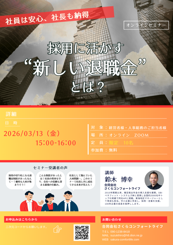 セミナー「採用に活かす“新しい退職金”とは」のご案内